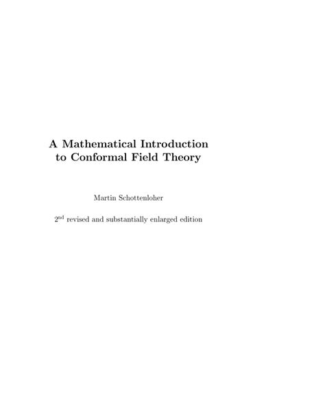 Read A Mathematical Introduction to Conformal Field Theory 2nd Edition Reader By Click Button. A Mathematical Introduction to Conformal Field Theory 2nd Edition it’s easy to recommend a new book category such as Novel, journal, comic, magazin, ect. You see it and you just know that the designer is also an author and understands the challenges involved with having a good book. You can easy klick for detailing book and you can read it online, even you can download it